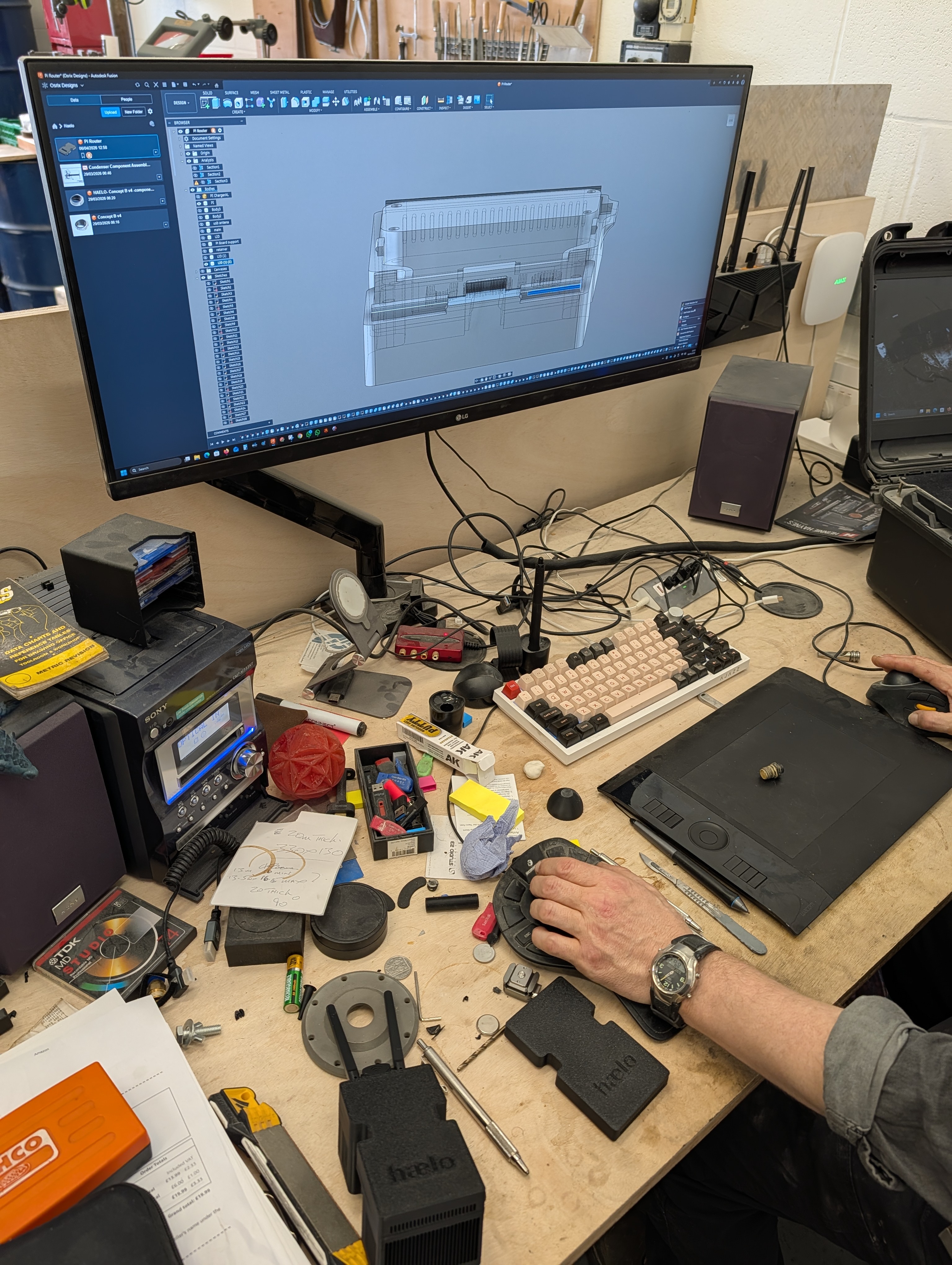 Earlier this week I visited Ben Levings at ArtScan3D, his workshop in Southampton. Ben is manufacturing the enclosure for the Haelo Hub, our Bluetooth gateway that connects Haelo wearables to the cloud. We've been collaborating on the Hub design together, and it's been one of the more rewarding partnerships we've had building Haelo.